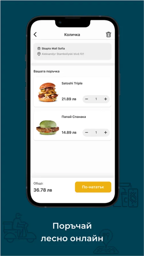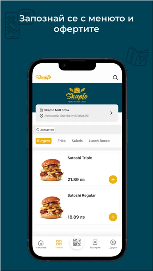 Skapto are the honest Bulgarian gourmet burgers, and now you can order them in your pajamas. Download our app and get lightning-fast delivery of your favorite burgers and beers right at your door. As easy as brushing your teeth while ordering a double Satoshi.