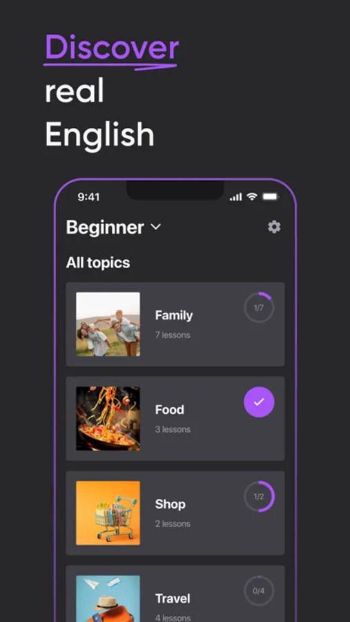 - Practice English comprehension with lessons.