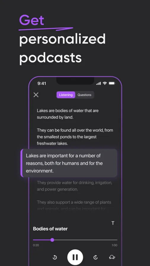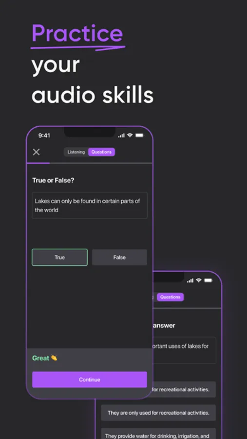 - Tests to check how well you understood the audio podcast and audiobook;
