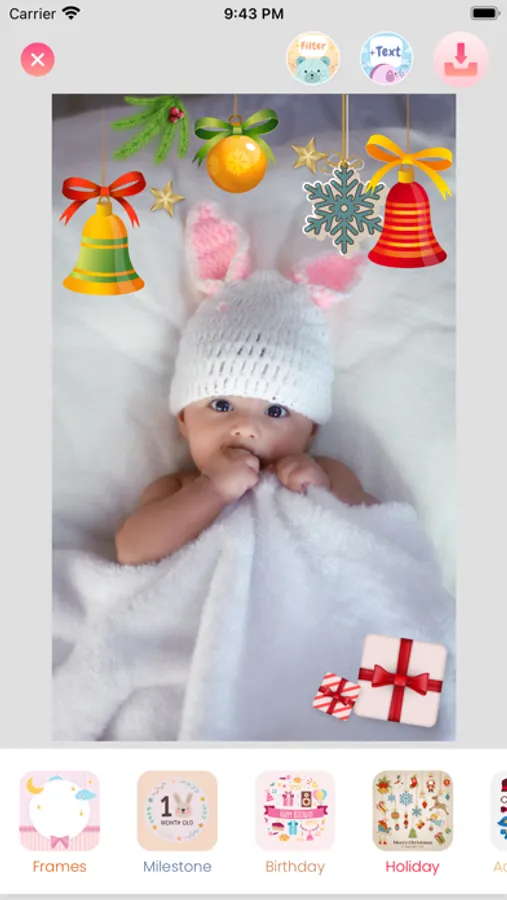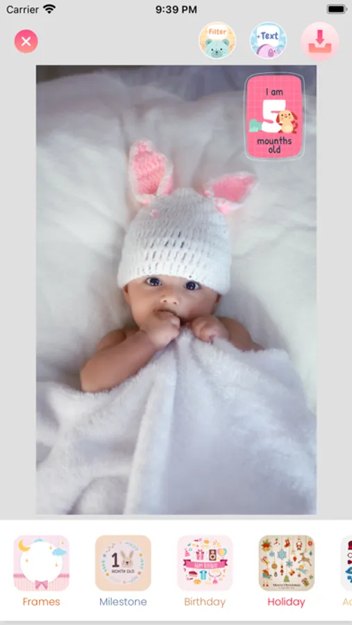 *Sweetie is an excellent baby photo editor for tracking your baby's milestones and following your child’s growth. Capturing stunning moment and baby milestone pictures is a breeze.