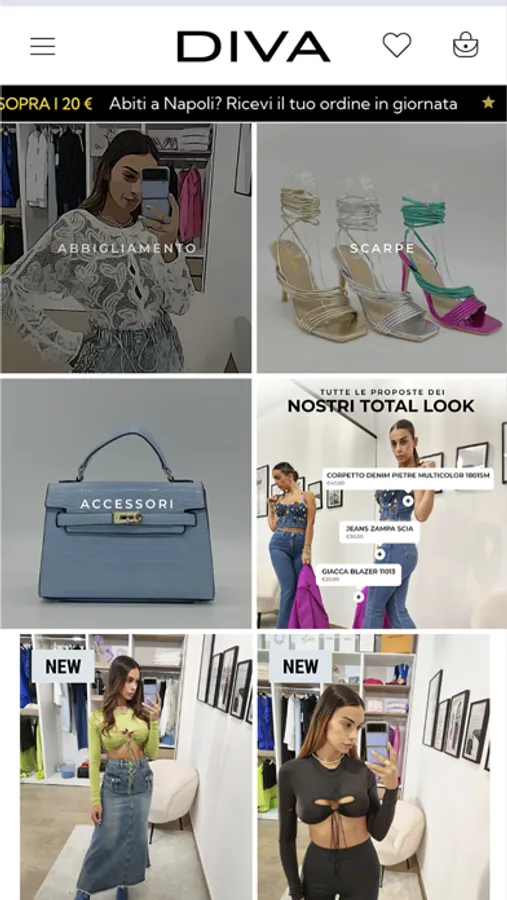 Lo shopping dei tuoi sogni è su DIVA APP: il total look di cui hai bisogno, nuovi arrivi giornalieri.
