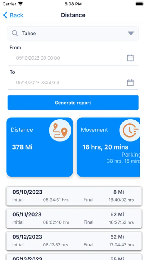 You can share the real-time location of your assets, create Geofences, activate notifications via Push, email, and SMS, view the history of your asset journeys, create reports of distance traveled and the current status of your vehicles.