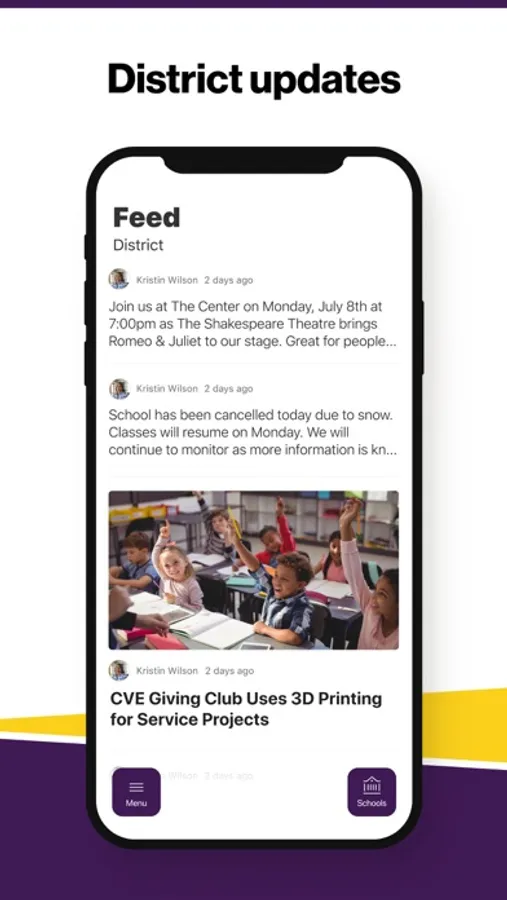 In the Live Feed is where you'll find updates from the administration about what's going on in the district right now. Whether that's celebrating a student's success, or reminding you about an upcoming deadline.