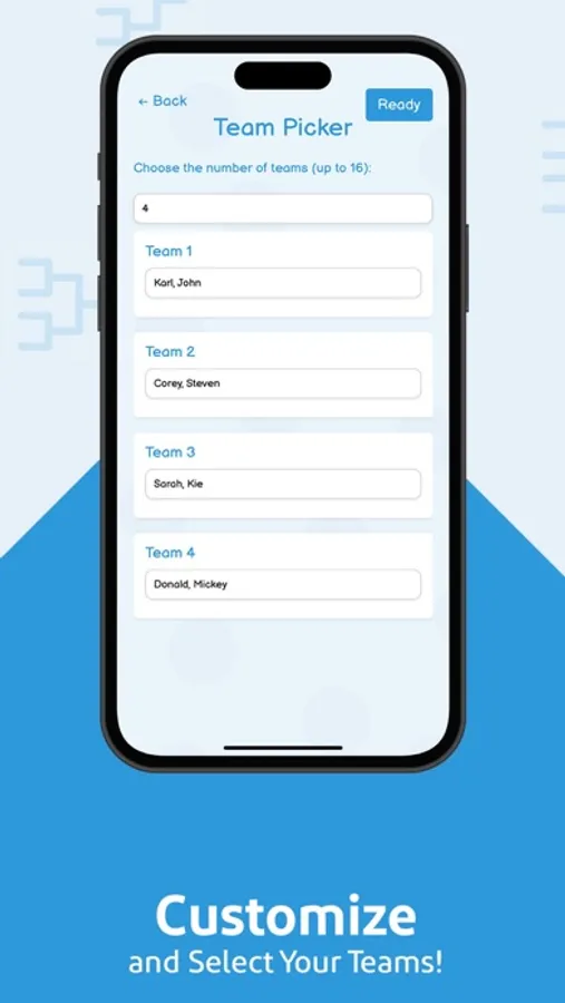 3. Pick Your Teams: Want more control? Bracket Genie allows you to handpick teams or players and create the perfect lineup for your tournament.