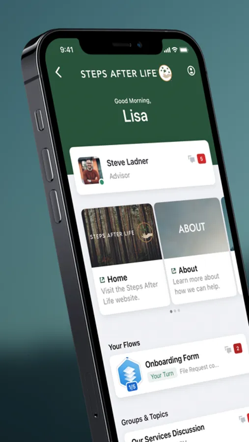 The official Steps After Life app allows you to access your account from anywhere. Communicate with your personal concierge, manage and track tasks, upload and e-sign documents, and get peace of mind through our safe and secure portal.