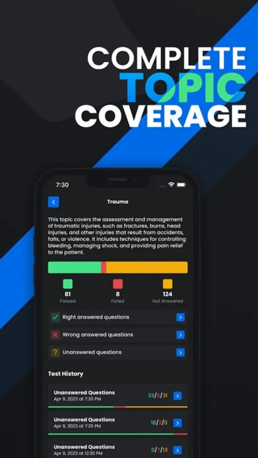 Need to practice different test scenarios? Our app offers unlimited access to all test modes, allowing you to simulate the real EMT exam environment and customize test length and difficulty to your needs. Plus, with our ad-free learning environment, you can focus on your EMT test prep without distractions.