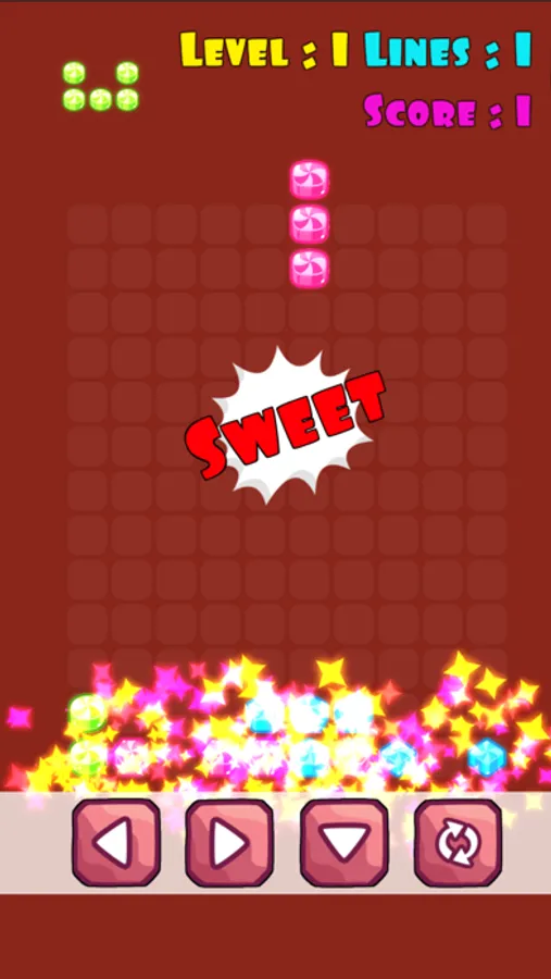 "Canditris" is a fun and exotic candy version of popular classic brick puzzle game.