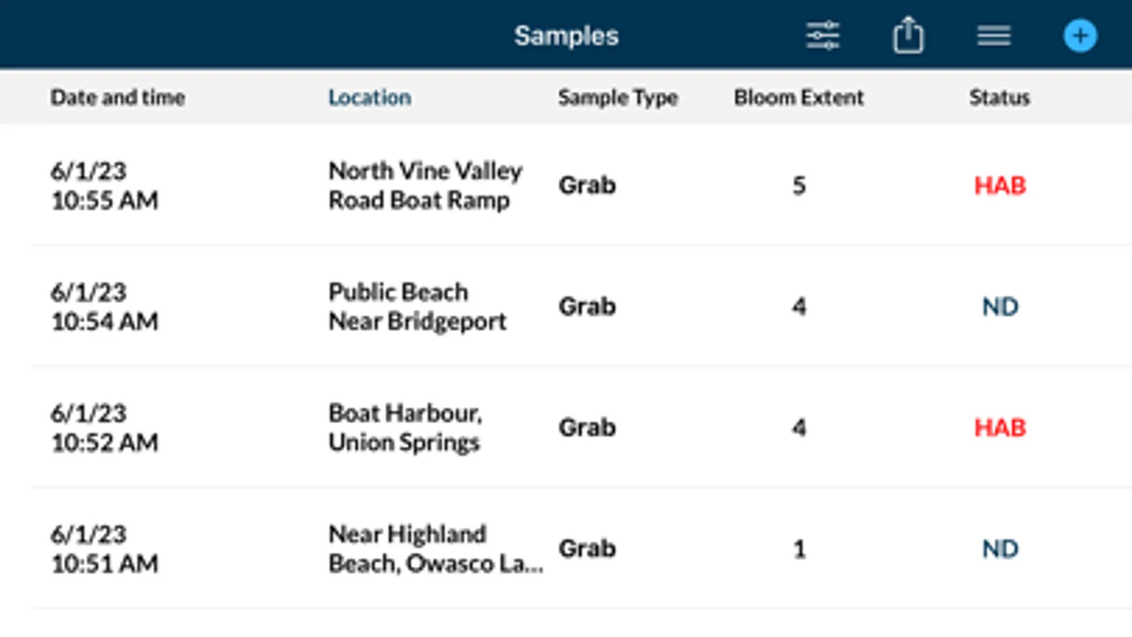 To use the BloomOptix® AI, collect a sample of water and plate a few drops onto a microscope slide. Then, image the sample using a 2mm ioLight microscope. Simply upload photos of suspected cyanobacteria via the app and provide field observations, and any other data you collect. The BloomOptix® AI will return cyanobacterial colony IDs and cell counts within seconds of upload. There is also no more need for chain-of-custody forms nor field data sheets, as all data uploaded via the app is can be geolocated, as well as automatically stored and archived for later use.
