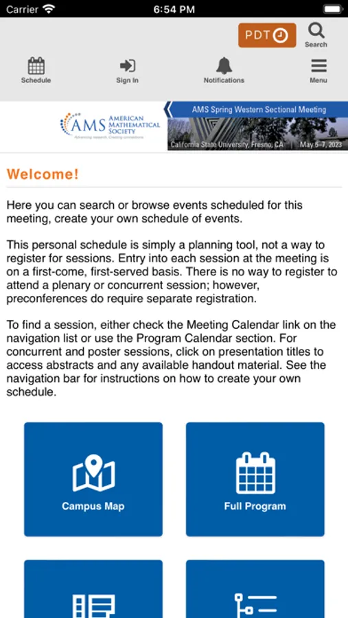 The AMS 2023 Spring Western Sectional Meeting will be held May 6th - 7th, 2023, in Fresno, CA. Login to view Sessions and Papers saved as favorites. View schedules, locations, floor plans, and people. Attendees will now be able to facilitate their experience at the meeting using the mobile app.