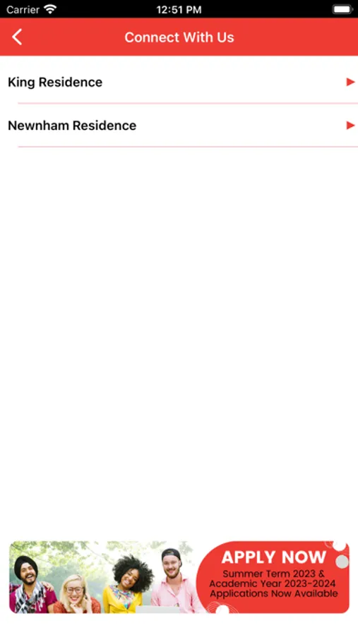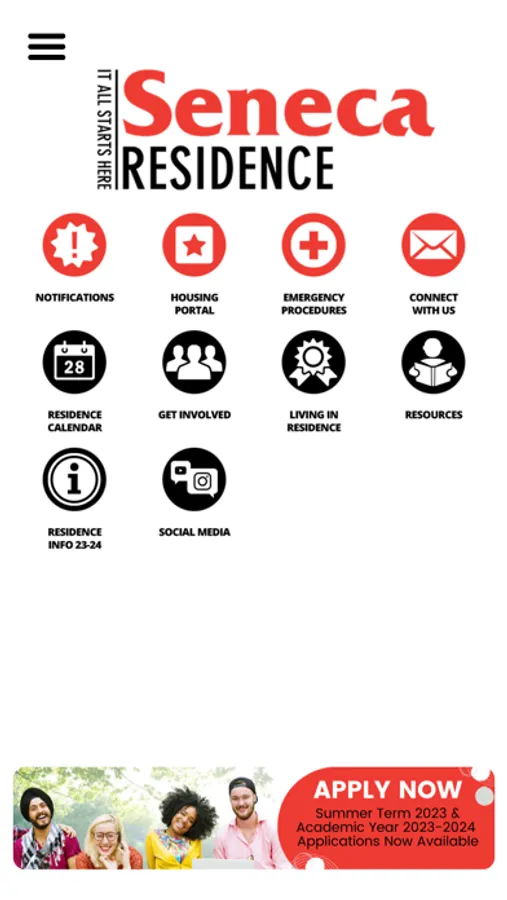 • Download our new mobile app for up-to-date residence information and resources. Get access to programs and events, as well as your Housing Portal for access to Maintenance Requests, your account, and applications.