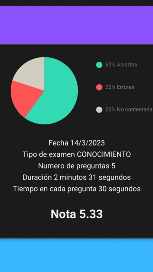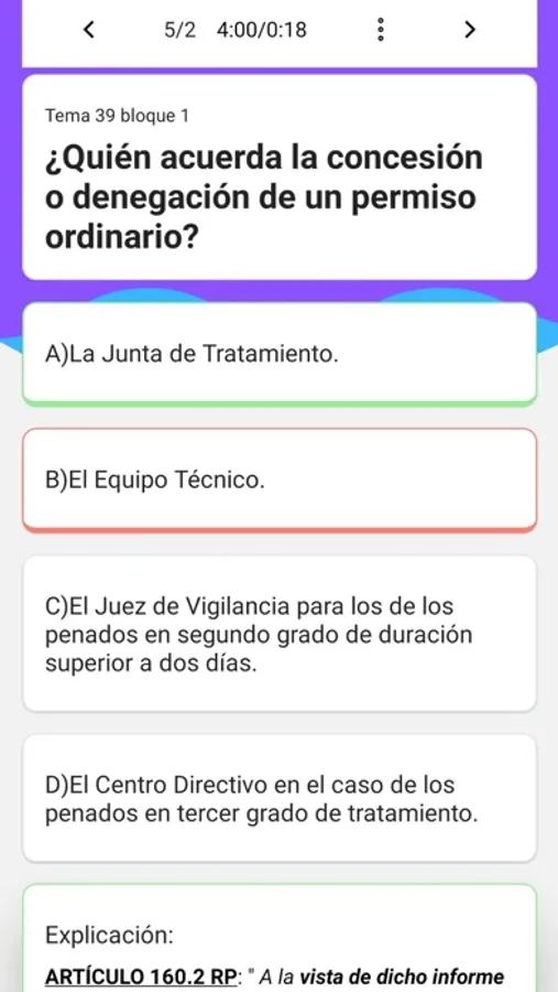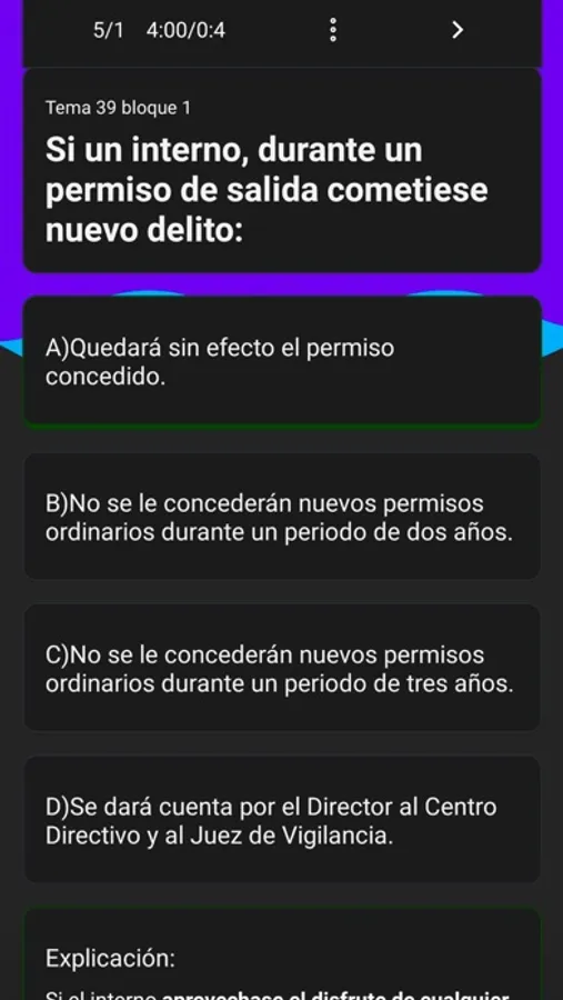 Además, nuestra aplicación cuenta con recursos educativos adicionales como explicaciones detalladas de las respuestas correctas e incorrectas.