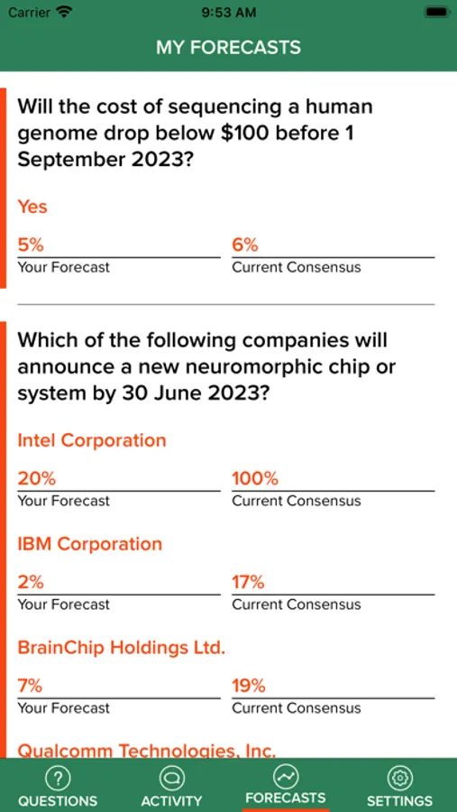 We use crowdsourced forecasting to generate more precise signals on future high risk, high impact science and technology issues and world events to aid government policy and decision makers.