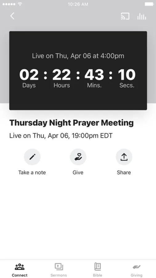 This app will help you stay connected with the day-to-day life of our church. With this app you can: watch or listen to past messages; stay up to date with push notifications; share your favorite messages via Twitter, Facebook, or email; and download messages for offline listening.