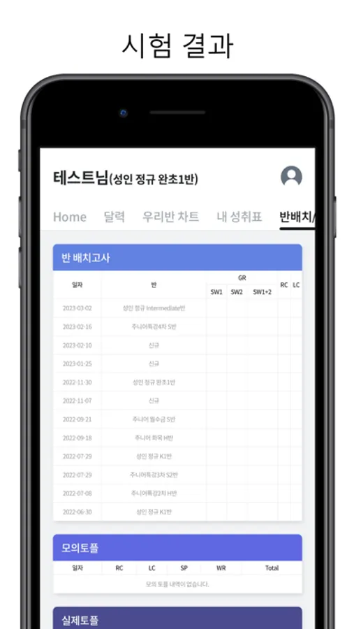 - 시험을 치면, 자동채점 되어 그 결과 값은 DB화되어 저장됩니다.