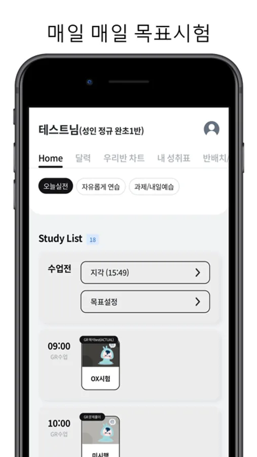 - 실라버스를 설정하여 학생들에게 그날 봐야할 시험 부여하세요