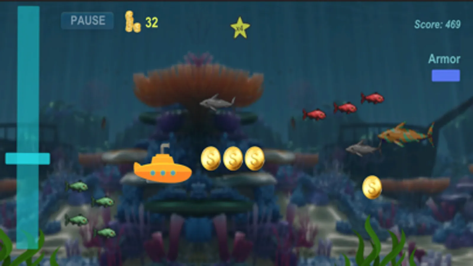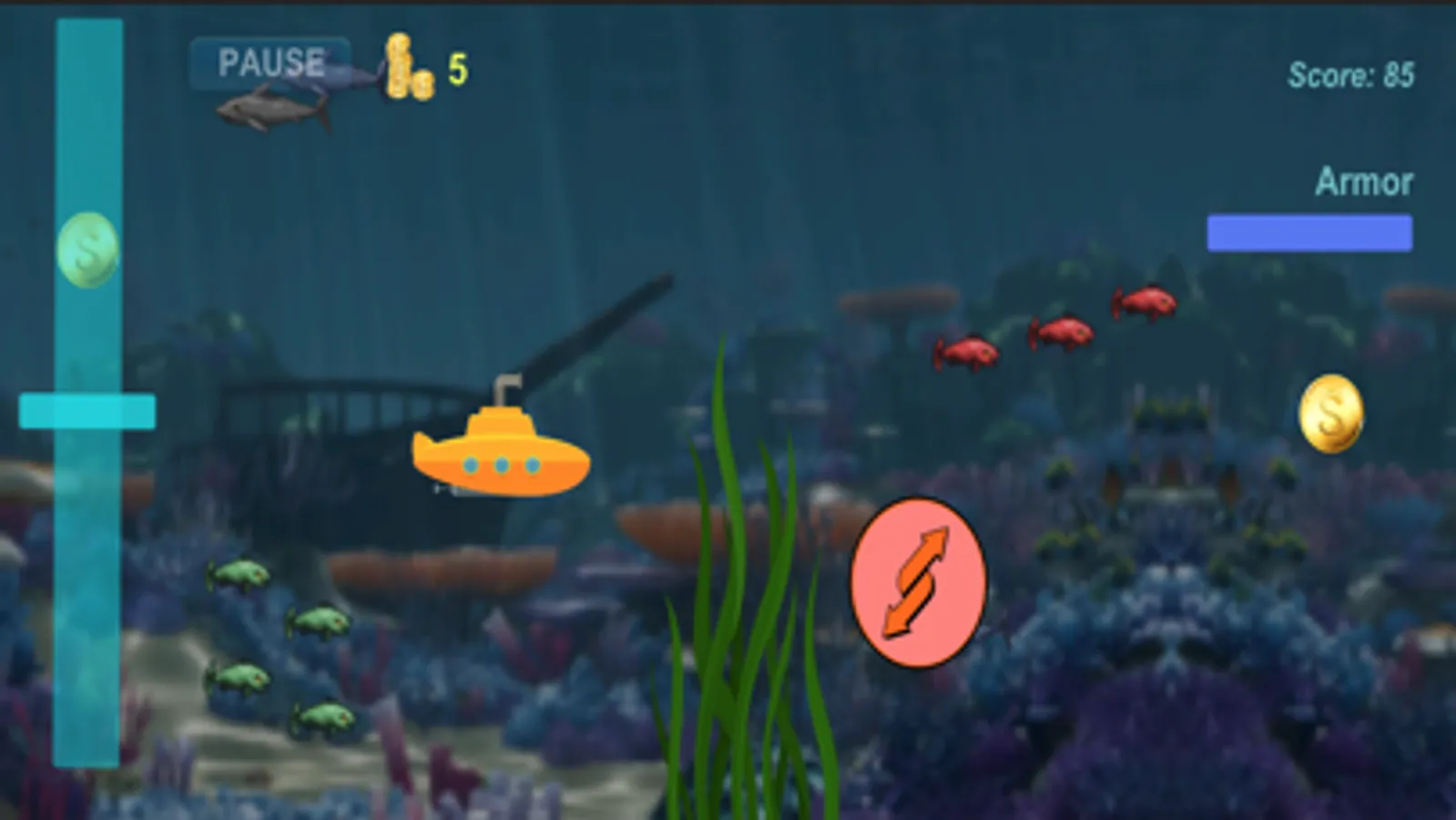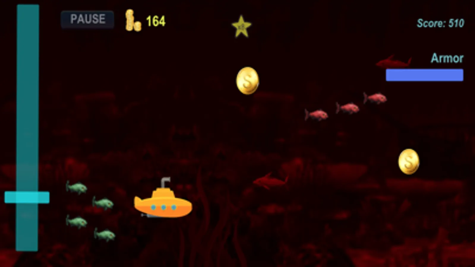 In this game, your goal is to use the submarine to swim as far as you can. You should collect items and coins which you will find in the sea. In shop you can use coins to buy new submarine. All of them have advantages.