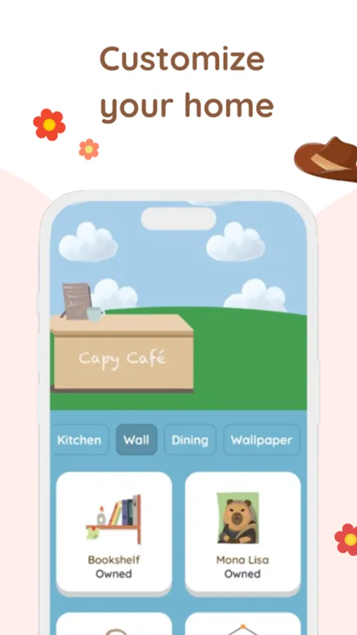 Every healthy choice you make helps your virtual capybara grow! Unlock fun clothes, furniture, and mini-games. Keep motivated with positive feedback and cozy home upgrades that reward your progress.