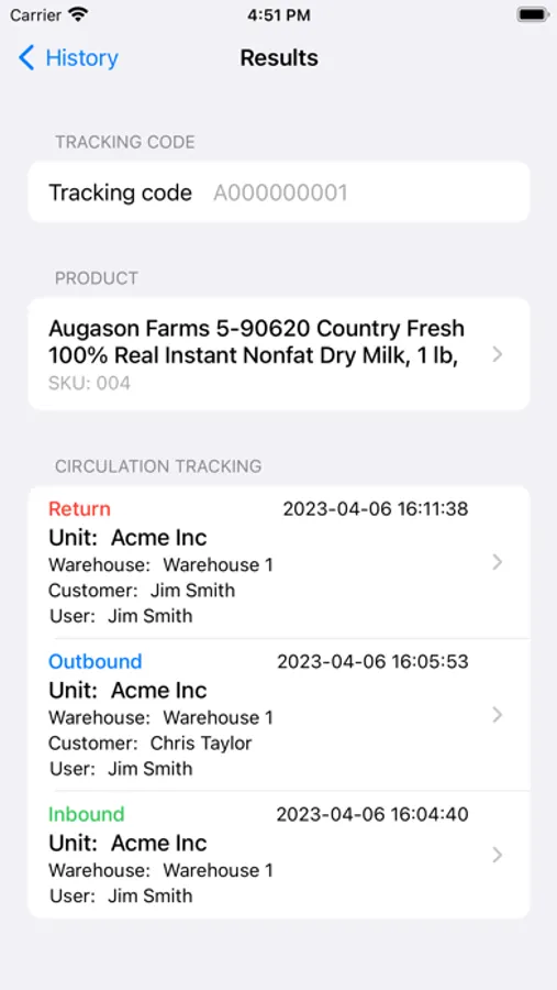 Nowadays, users of this app are spread across various industries and countries, and they are all using it to meet the traceability needs of various application scenarios and products. For example, it is used to trace the sales of milk powder, the anti channeling of wine, the receiving and dispatching of packages, and the process of production and assembly. The products being traced are even more diverse, such as package, product parts, mobile phones, televisions, badminton rackets, drones, cosmetics, pharmaceuticals, cars, and so on.
