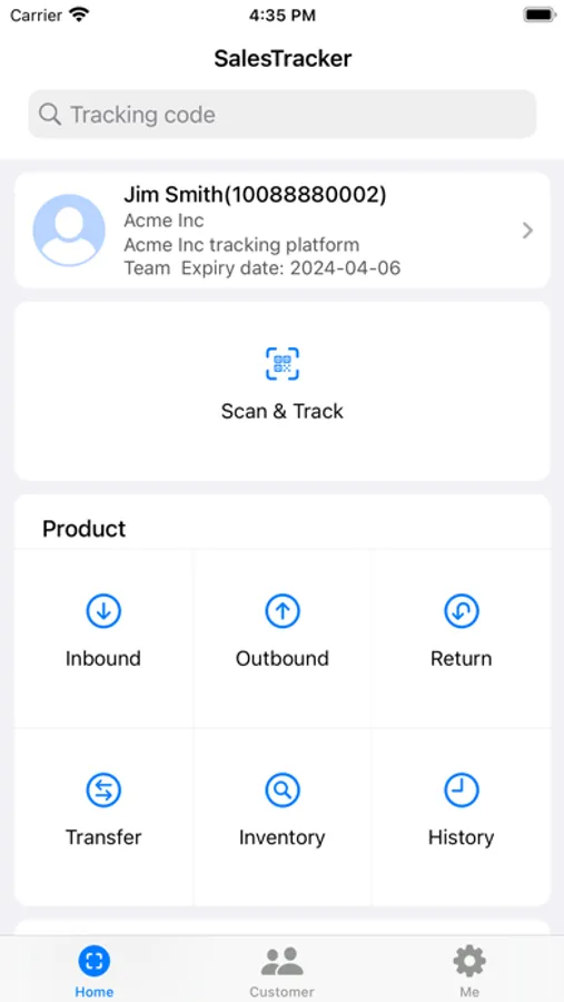 Sales Tracker is a mobile application that scans and manages product traceability codes, serial numbers, and logistics tracking numbers, achieving full process scanning and tracking of a product. If you are a manufacturer, distributor, reseller, or supply chain, you can use this app for production process traceability, distributor anti tampering, circulation process traceability, logistics traceability, product anti-counterfeiting verification, and inventory management. If you are a logistics transportation or express delivery operator, you can use this app to scan and track the entire process of receiving, storing, transporting, transferring, and dispatching. When it is necessary to investigate a product, you can enter or scan a tracking code, the time, location, scanning person, and circulation direction of each scan of the product will be found.