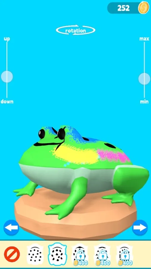 The mischievous green skinned frog started selling frog cubs. We first painted the frog with our favorite color, and then followed the prompts to color the frog cubs. Selling the frog cubs earned us more money.