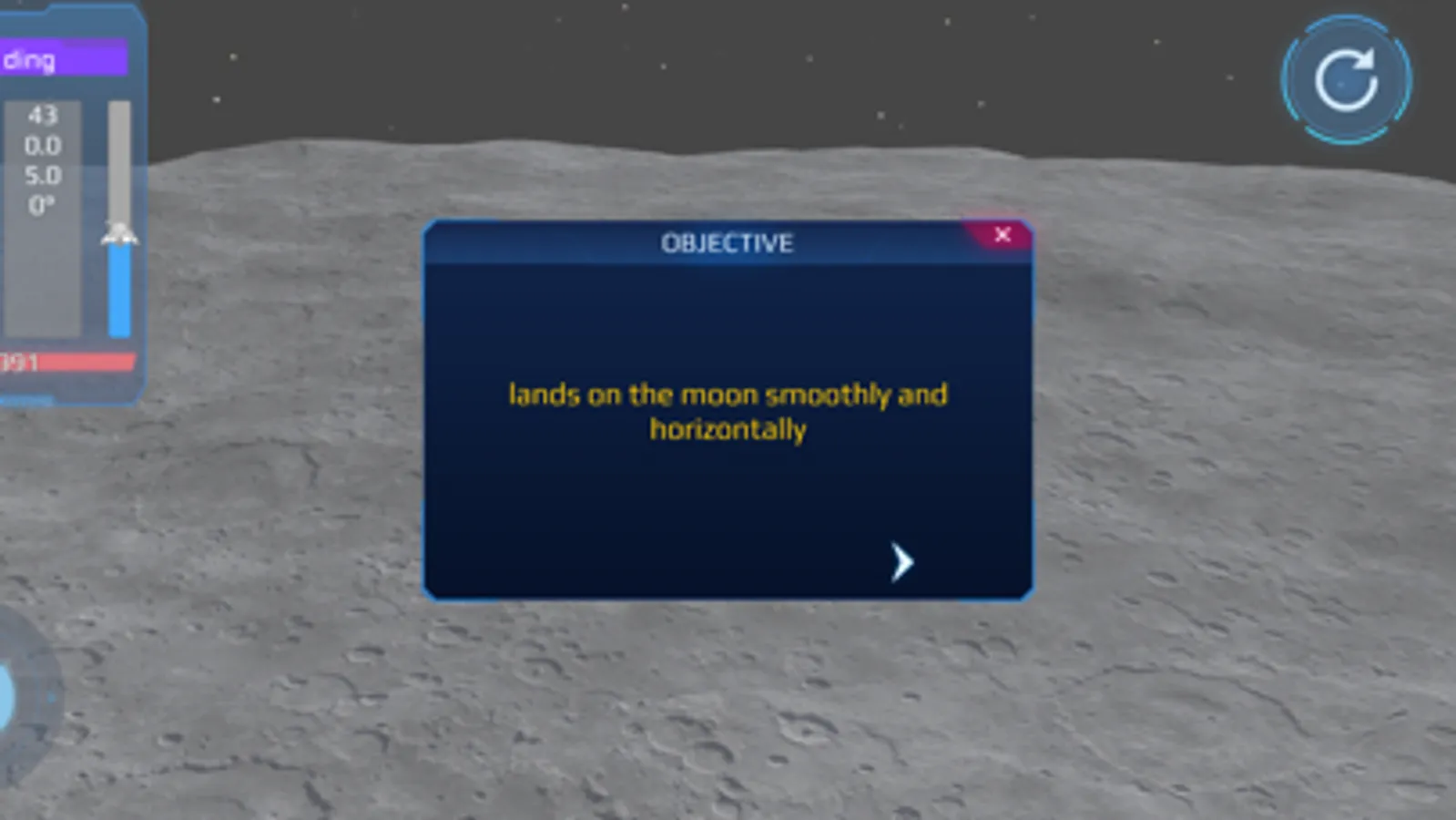 Explore the lunar landscape, navigate through obstacles, and complete a series of challenging missions as you journey to the surface of the Moon. Use your wit and skills to overcome the challenges that await you and become a master of space exploration. With intuitive controls and easy-to-learn gameplay, you'll be able to jump right in and start your adventure in no time.