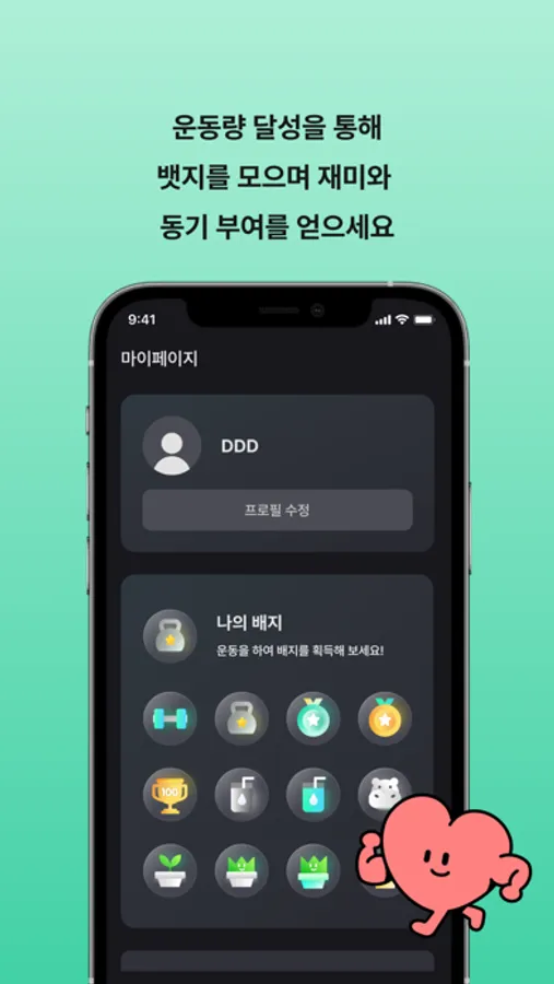 꾸준한 운동을 통한 성취감을 느낄 수 있도록, 득근 득근이 도와드릴게요!
