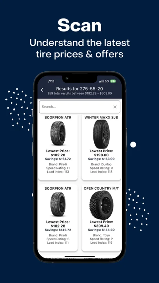 • AI Chat for Quick Help: Have questions? Get real-time, AI-generated advice on your car, tires, and future repairs.