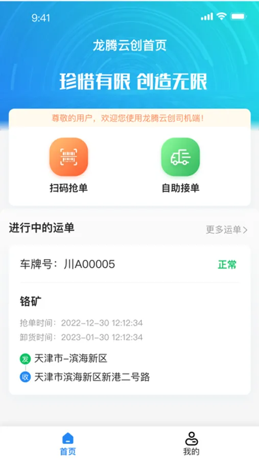 龙腾云创司机端APP是龙腾云创平台下以司机作为承运服务执行者的应用场景进行设计的一款数字应用工具;为司机量身定制,简单方便,易于上手,汽运司机在执行运输任务的过程中,记录关键业务节点。