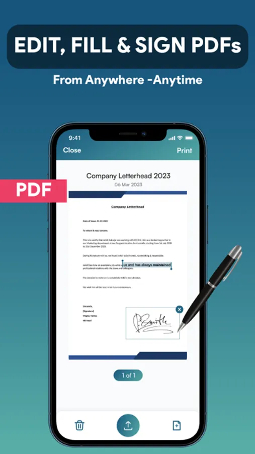 - IMPORT, EDIT & MANAGE PDF FILES: Add PDF files from device and photos or scan directly from Camera. Easily edit documents and add text, signature, shapes, comments and highlights to a PDF file.