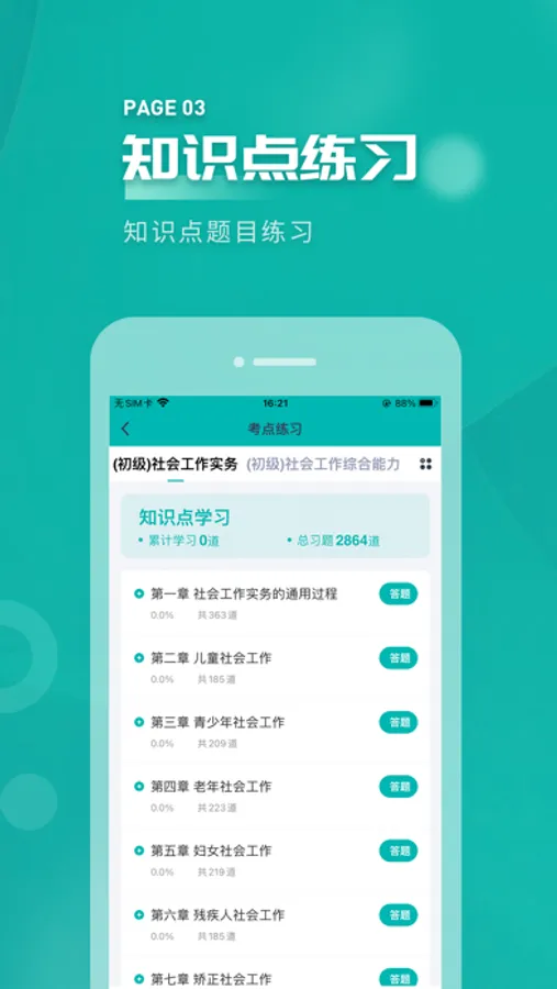 专为社会工作者考试学员精心准备的考试配套题库,内容涵盖:每日一练、考点练习、历年真题、模拟试题等多个模块,为广大考生提供全面化、科学化、个性化的练习好工具!