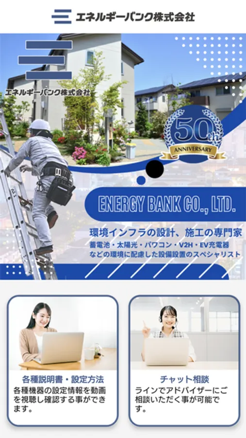 エネルギーバンク株式会社で太陽光・蓄電池・V2H等を導入されたお客様向けの公式アプリです。