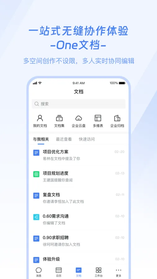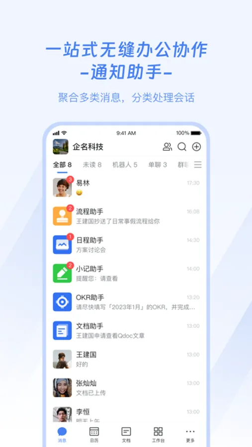 企名片One是数字时代的企业协同办公平台,通过组织数字化和业务数字化引领新一代工作方式,是企业隐形的核心竞争力,支撑企业高速发展。