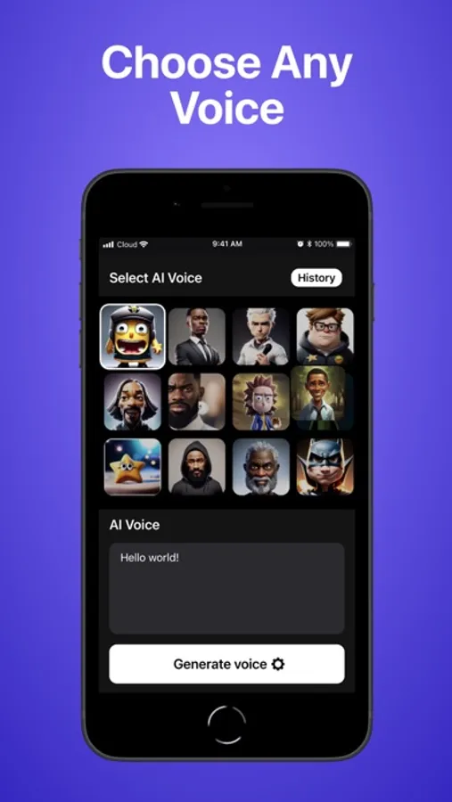 AI Voice enables you to create voice message using characters and persons by only typing the text
