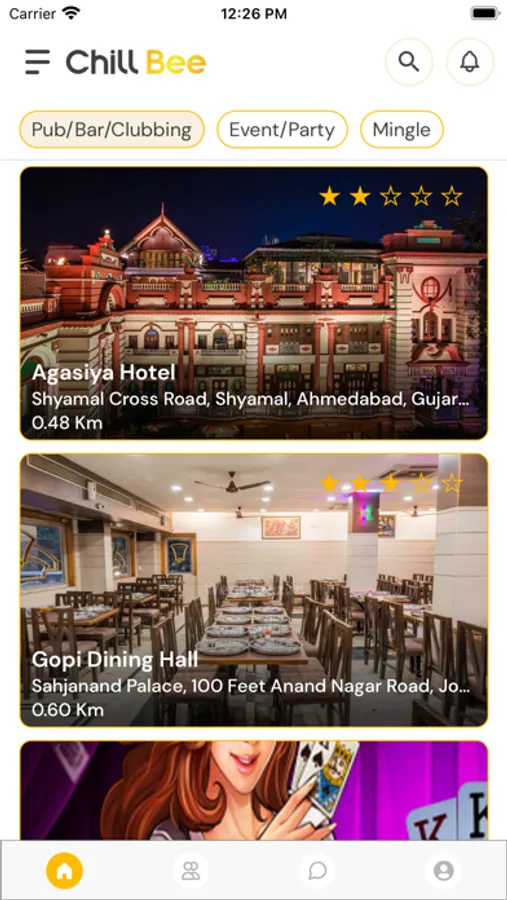Chill bee is a forum to find pubs, restaurants, lounges or cafes in and around your vicinity. Wish to connect with new people, attend happening parties in town or simply unwind after a long day. Chill bee has got you all covered. It allows you to readily browse through imminent events and pepped up parties around your location.