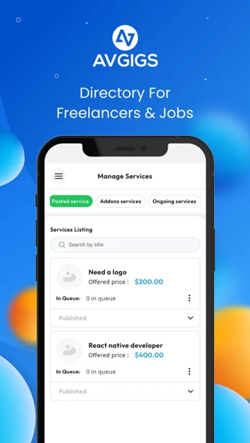 The Avgigs app enables you to find, manage, and monitor your gigs or freelancers on the go.
