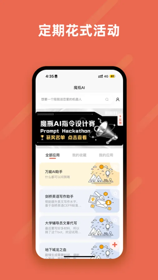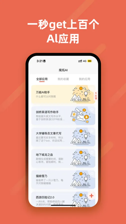 魔瓶平台为有创意的用户提供了开发和分享自己AI应用的空间。您可以根据个人需求或兴趣来打造独一无二的AI应用,与其他用户共享创新成果,共同推动AI技术的发展。