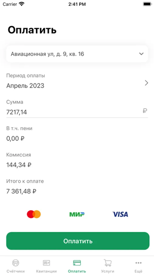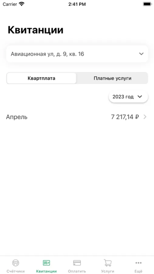 • Просмотр начислений за жилищно-коммунальные и прочие услуги;