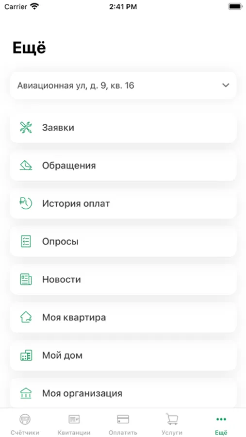 • Отправка обращений в управляющую организацию.