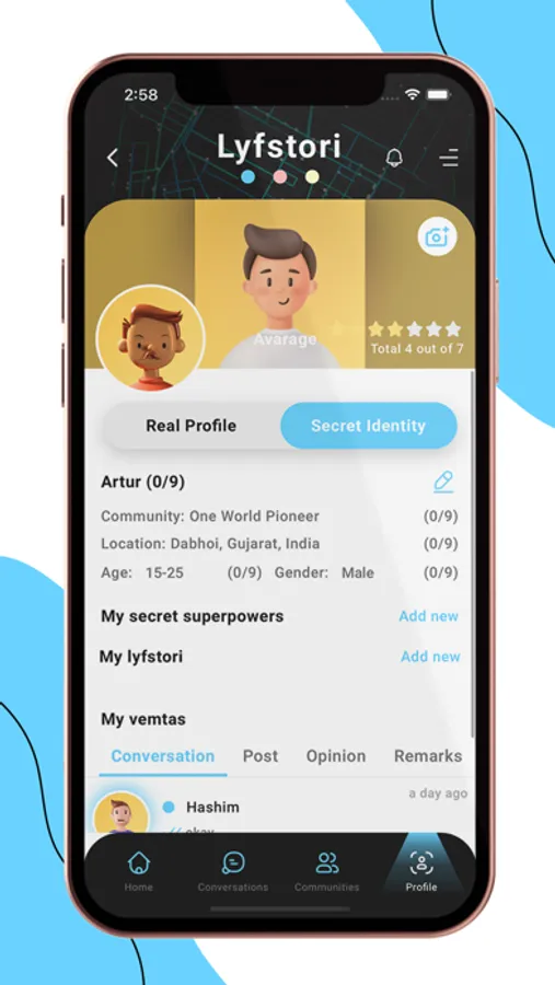 Lyfstori will change the way you connect with people. Rebels are invited. It will eliminate fear of judgement, help you speak your mind and unbottle yourself. It will connect the dots that belong together. An all-purpose interaction platform where you can speak your mind responsibly. Have fun a little, all without risking your personal identities. Starting with inter-campus debate/ Exchange of views and perspectives. A fact over face approach.
