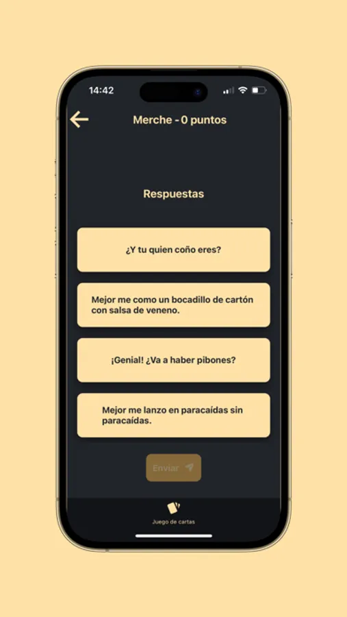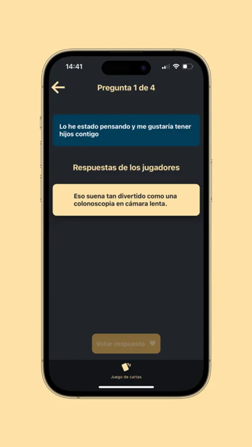 Di la pregunta en alto, tus amigos responden, seleccionas la respuesta que más gracia te haga y vota cual es la mejor.