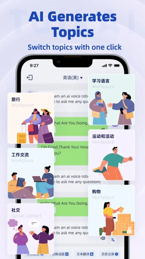 In addition, Talk AI offers a variety of conversation topics to choose from, including travel, weather, food, and more. Each conversation is presented in a casual, natural way and uses common English expressions and idioms, so you not only learn vocabulary, but also learn how to communicate more effectively.