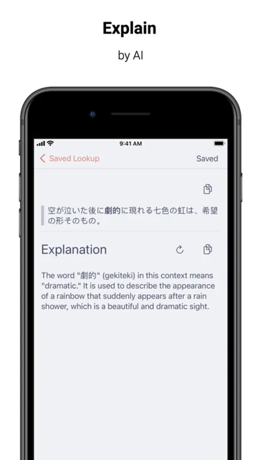 Additionally, saved explanations can be exported as Markdown to other note-taking apps or as CSV to AnkiMobile App. Explanations can also be synced between your iOS and macOS devices.