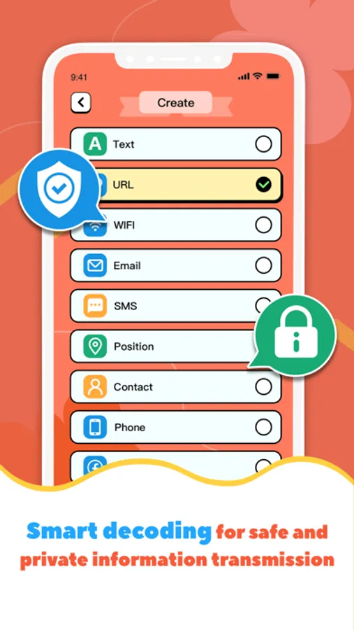 Support the creation of QR codes such as Text, Url, WiFi, Email, SMS, Location, Contact, Phone, etc.