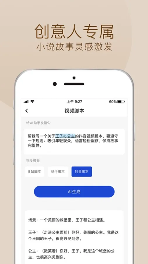 分析,以及多种专业营销文案,产品介绍模板等等;它同样能够生产多种新媒体文本,比如短视频文稿和图文内容等等。让您一键为自己的服务增加吸引力和说服力。摸鱼,是创造财富!