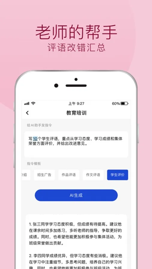 AI摸鱼文案,针对大家难于向机器人发出好的指令的痛点,特别内嵌了数十种优秀的指令模板,让您轻松玩转A写作!