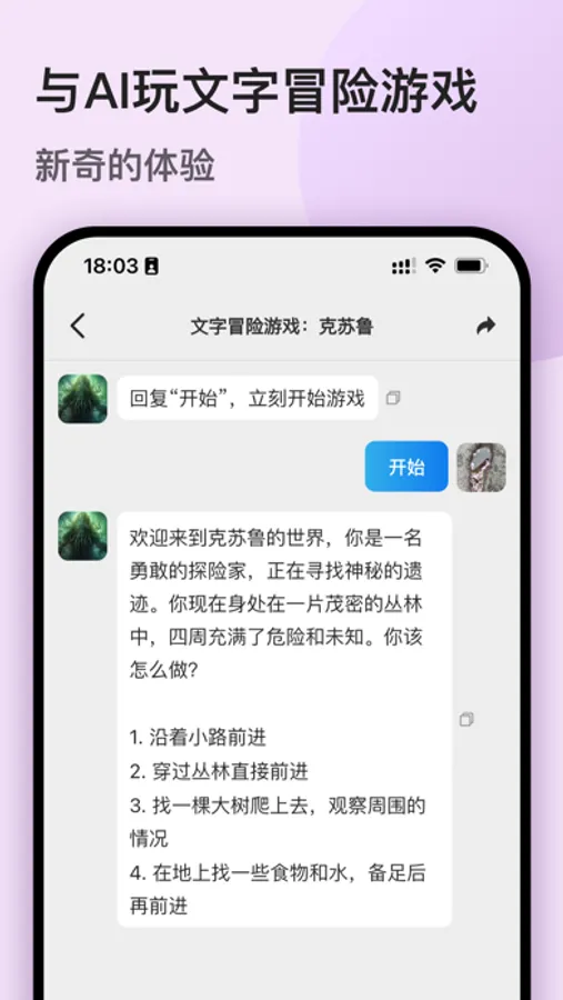 娱乐:你可以跟虚拟AI角色对话,如秦始皇、工藤新一、漩涡鸣人、科比、邓丽君、张国荣,甚至是玩不同风格的文字冒险游戏