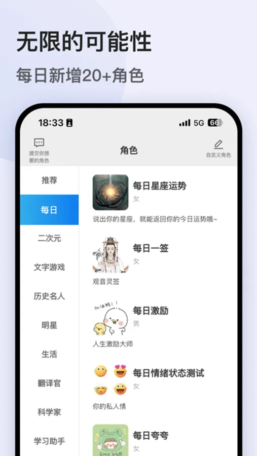 自定义AI角色:你甚至可以定制创造属于自己的AI角色,为其定义性格,与其聊天