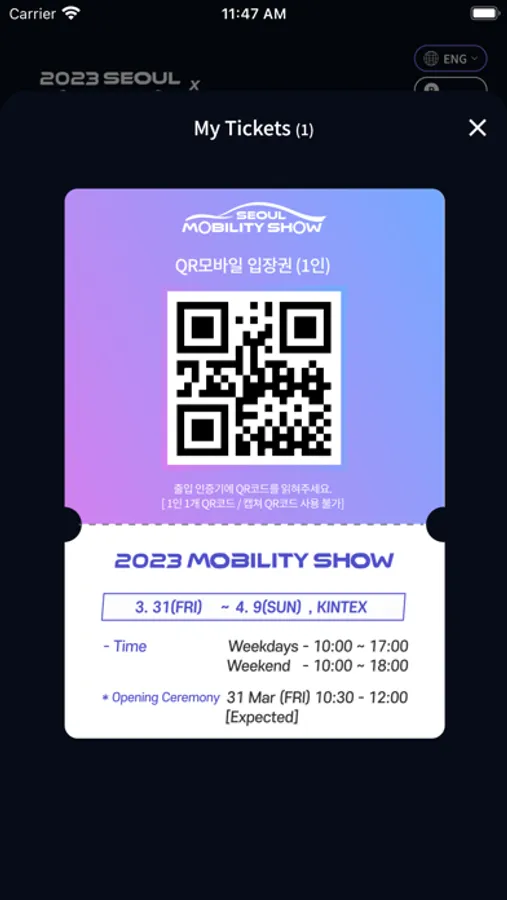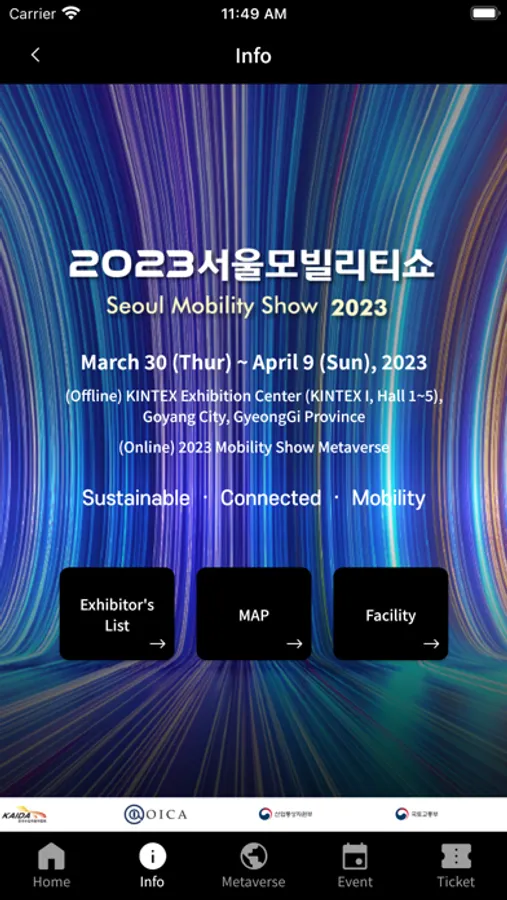 "2023 Seoul Mobility Show (Thu, Mar 30, 2023 – Sun, Apr 9, 2023)" dedicated application.