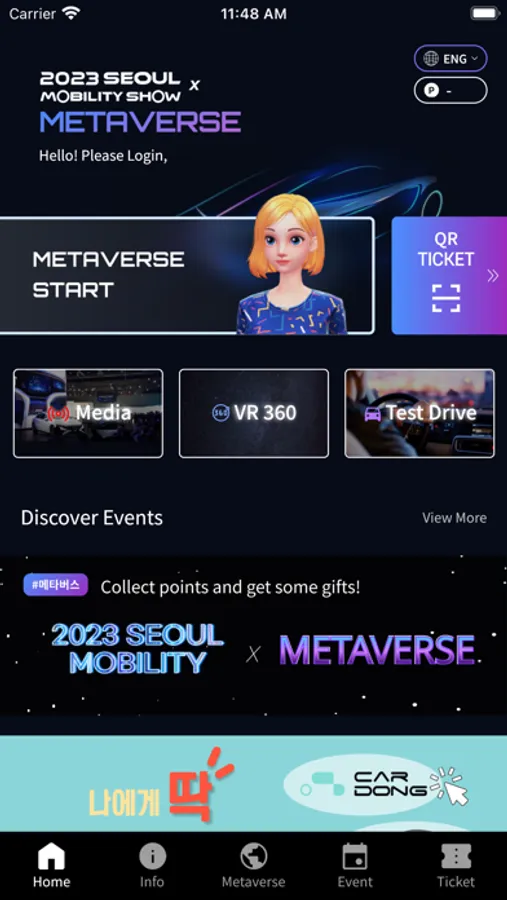 A mobile app that implements the Seoul Mobility Show as a metaverse and allows visitors to experience various exhibition contents such as various new cars and future mobility in a 3D virtual space.