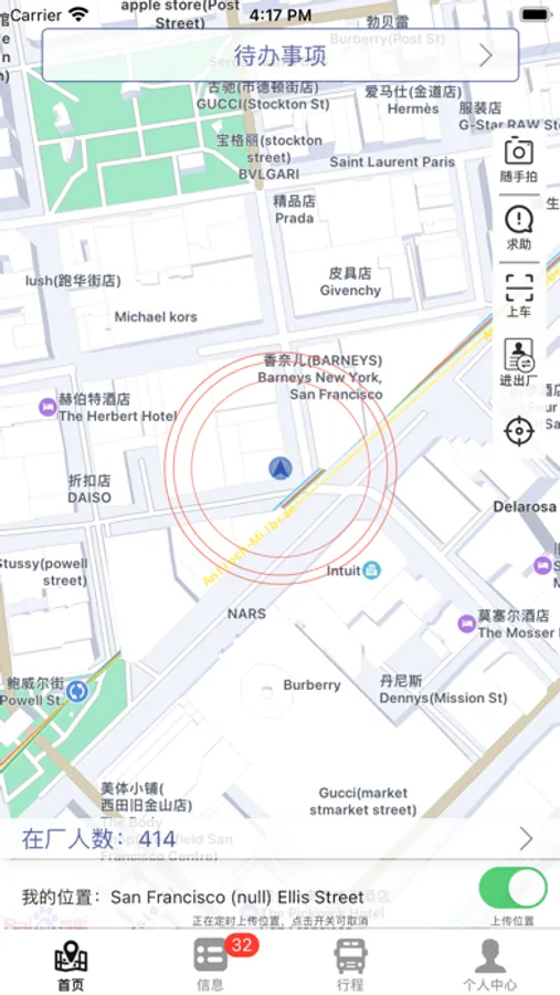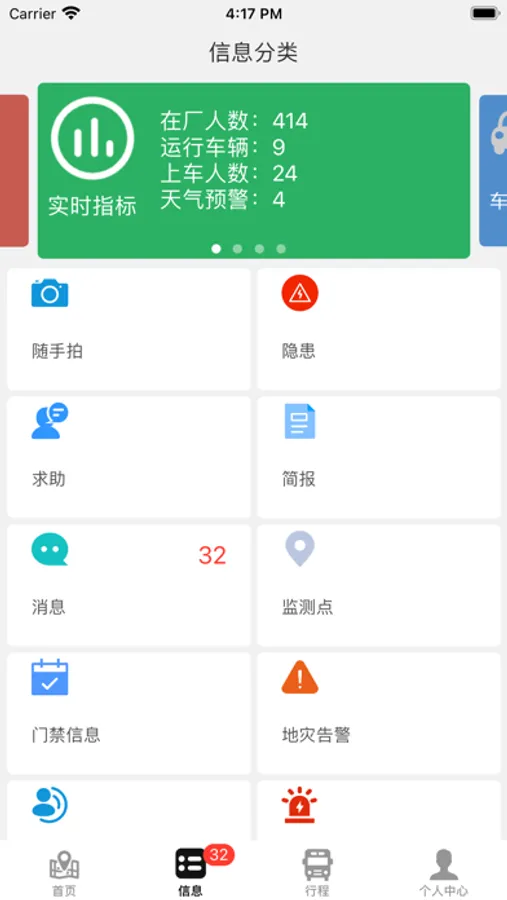 本app是一款地灾监测工具类应用,包含个人位置信息上传,进出厂,随手拍,信息,行程,个人中心等内容